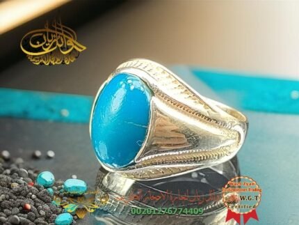 خاتم فضة متوج بجوهره من حجر الفيروز المصور طبيعي اسم مكه